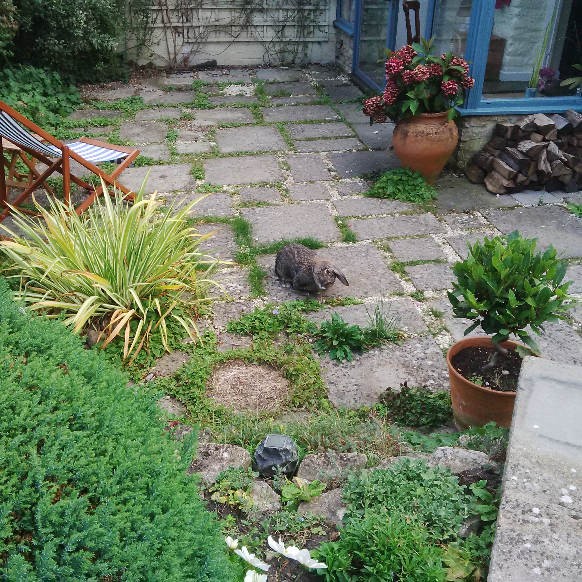 As before, he patrols the terrace most effectively. It does need defending from rogue sprigs and invading fire logs as you can see.